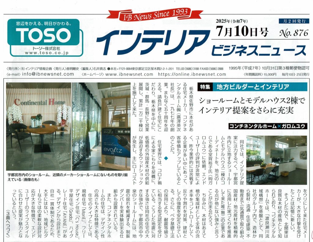 「インテリアビジネスニュース2025.7月号」に掲載いただきました